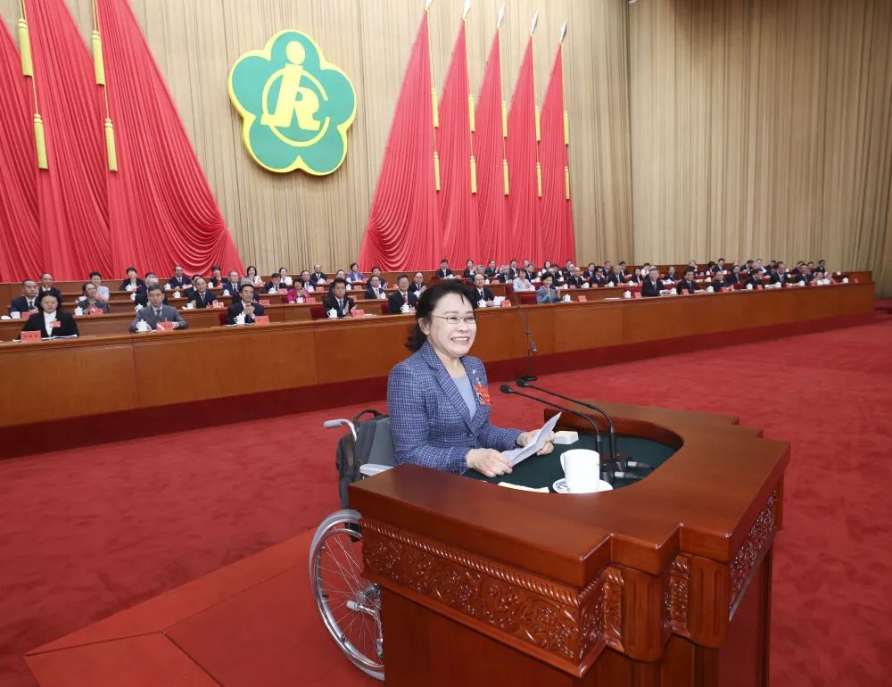 丁薛祥在致词中表示,在以习近平同志为核心的党中央坚强领导下,新时代十年我国残疾人事业开创了蓬勃发展的新局面,如期实现“全面建成小康社会,残疾人一个也不能少”的目标。广大残疾人以梦想为伴、与时代同行,用顽强奋斗把一个个美好梦想变成现实,以实际行动生动诠释了自强不息的伟大民族精神和时代精神。丁薛祥强调,党的二十大对完善残疾人社会保障制度和关爱服务体系、促进残疾人事业全面发展提出了明确要求。要坚持以习近平新时代中国特色社会主义思想为指导,全面贯彻落实习近平总书记对残疾人事业发展作出的重要论述和重要指示批示精神,牢牢把握平等、融合、共享的价值导向,牢牢把握推进残疾人事业现代化的历史使命,牢牢把握推进残疾人共同富裕的目标任务,促进残疾人事业全面发展。各级党委和政府要进一步健全残疾人事业领导体制,各级政府残疾人工作委员会加强统筹协调,有关部门单位密切配合,各级残联认真履职尽责,广大残疾人继续发扬自尊、自信、自强、自立精神,在中国式现代化进程中共同创造残疾人更加幸福美好的生活。中华全国妇女联合会党组书记、书记处第一书记黄晓薇代表中华全国总工会、中国共产主义青年团中央委员会、中华全国妇女联合会、中国文学艺术界联合会、中国作家协会、中国科学技术协会、中华全国归国华侨联合会、中华全国台湾同胞联谊会向大会致贺词。贺词指出,各群团组织要继续发扬优良传统,充分发挥各自优势,带领所联系群众更加信心满怀、更加斗志昂扬地紧跟党走在强国建设、民族复兴的康庄大道上,共同谱写新时代党的群团工作新篇章。