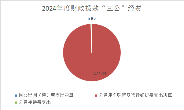 2024年度财政拨款“三公”经费支出决算中,因公出国(境)费支出决算0万元,占0%;公务用车购置及运行维护费支出决算174.44万元,占99.5%;公务接待费支出决算0.92万元,占0.5%。具体情况如下:
