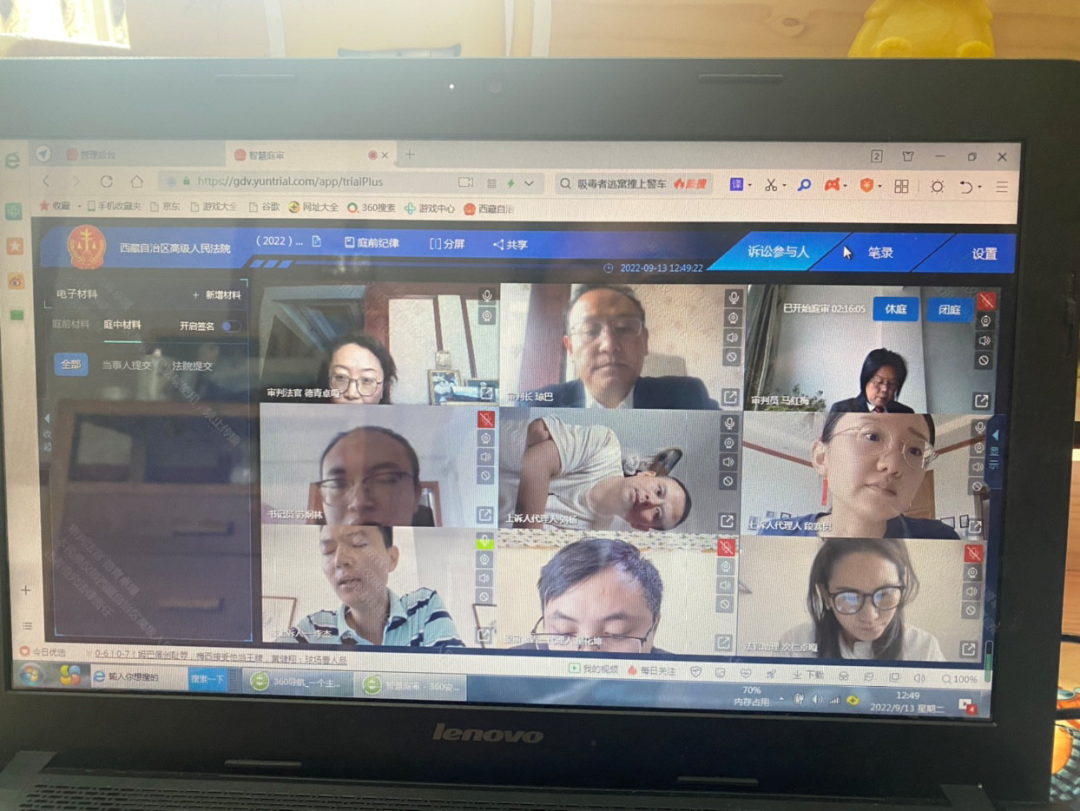 “双方当事人,能听到声音吗?现在开庭!”疫情背景下,一场特殊的庭审正式开始。9月13日,高院民事审判团队三名法官通过“云晤”系统审理一起建设工程施工合同争议案件。因疫情影响,案件承办法官均居家办公,无法开展线下庭审,为确保该案及时高效审理,在征得双方当事人一致同意后,承办法官决定将该案庭审从线下转至线上。庭前,承办法官多次与当事人进行沟通,征得同意后耐心细致讲解线上小程序的使用方法,提前调试设备,指导当事人正确操作,提示当事人以电子传输的方式提前交换了上诉状、证据扫描件、答辩意见、质证意见等,在各方的努力下,一场共9人居家参与的庭审顺利开启。线上庭审过程中,在法官的主持和引导下,法庭调查、辩论等庭审环节规范有序进行,书记员同步制作笔录,整个庭审过程画面流畅、语音清晰,受到了双方当事人的一致好评。