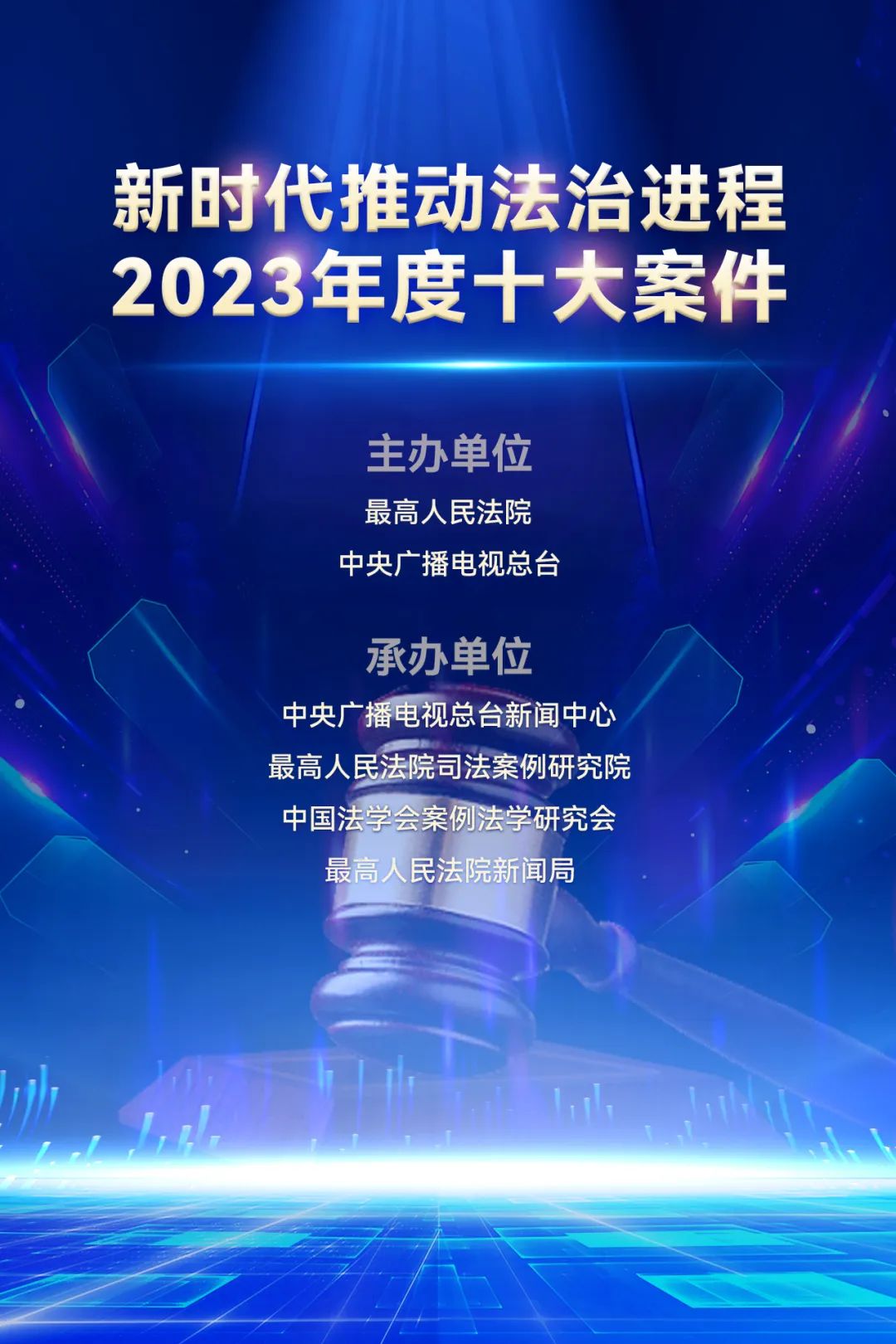 为深入贯彻落实党的二十大精神,践行习近平法治思想,大力弘扬社会主义核心价值观,促进科学立法、严格执法、公正司法、全民守法,由最高人民法院与中央广播电视总台共同主办的“新时代推动法治进程2023年度十大案件”宣传活动网络投票于12月4日正式启动。45个广受社会关注的热点案件将在网上进行展示,并接受社会公众投票。