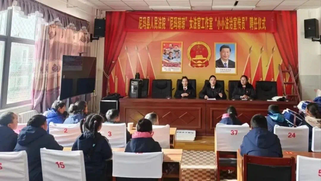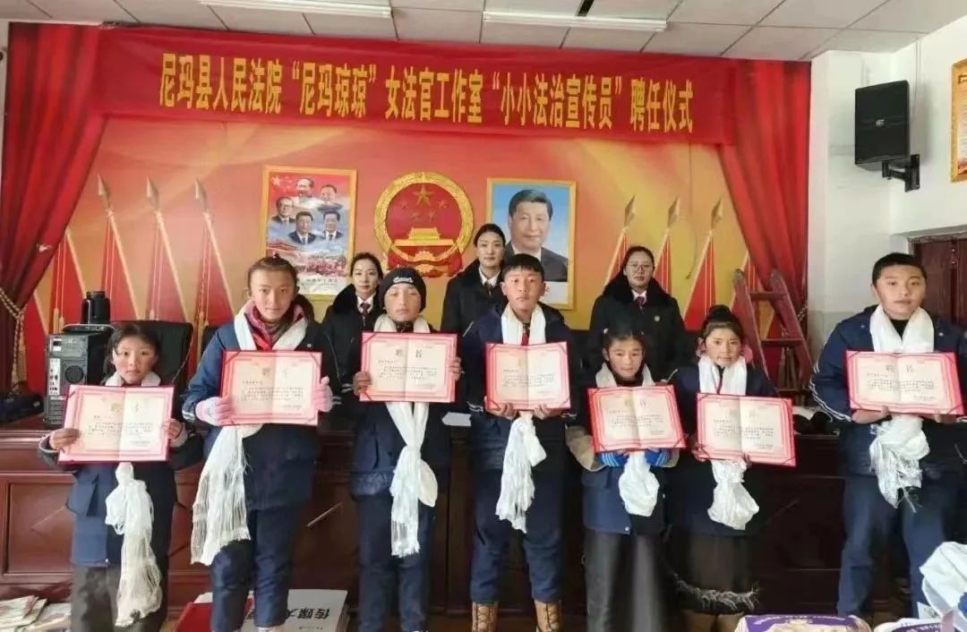 为进一步落实未成年人司法保护,助力法治校园建设。近日,尼玛县法院“尼玛琼琼”女法官工作室在县中学、第一小学、第二小学举办“小小法治宣传员”聘任仪式。