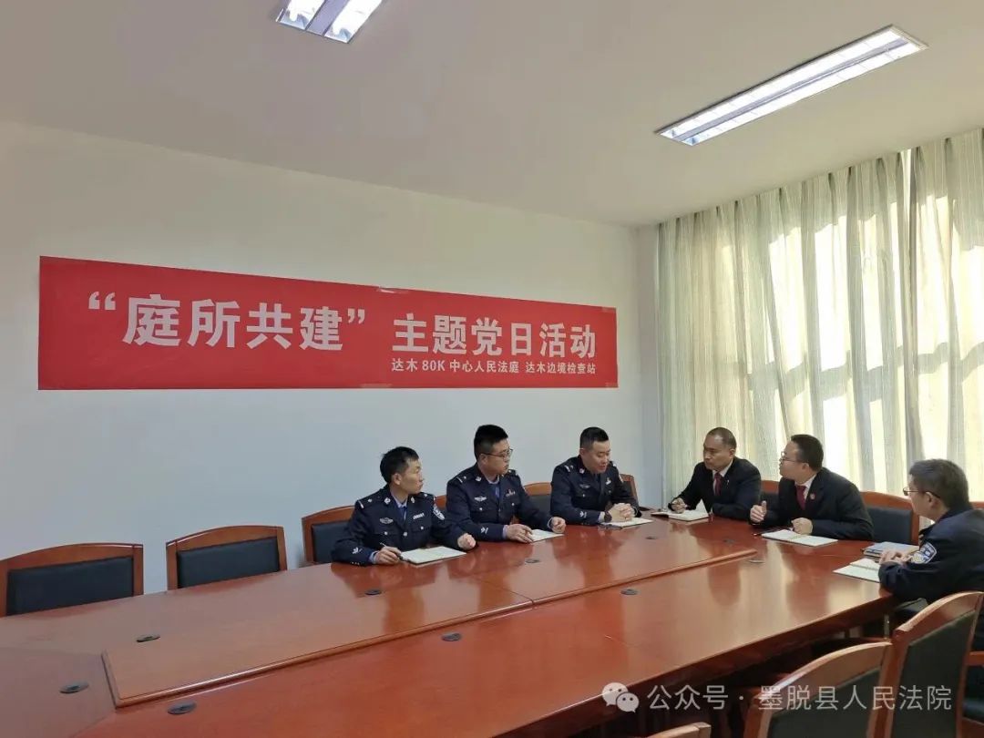 5月7日,墨脱县人民法院达木80K中心人民法庭与达木边境检查站联合开展“庭所共建”主题党日活动。