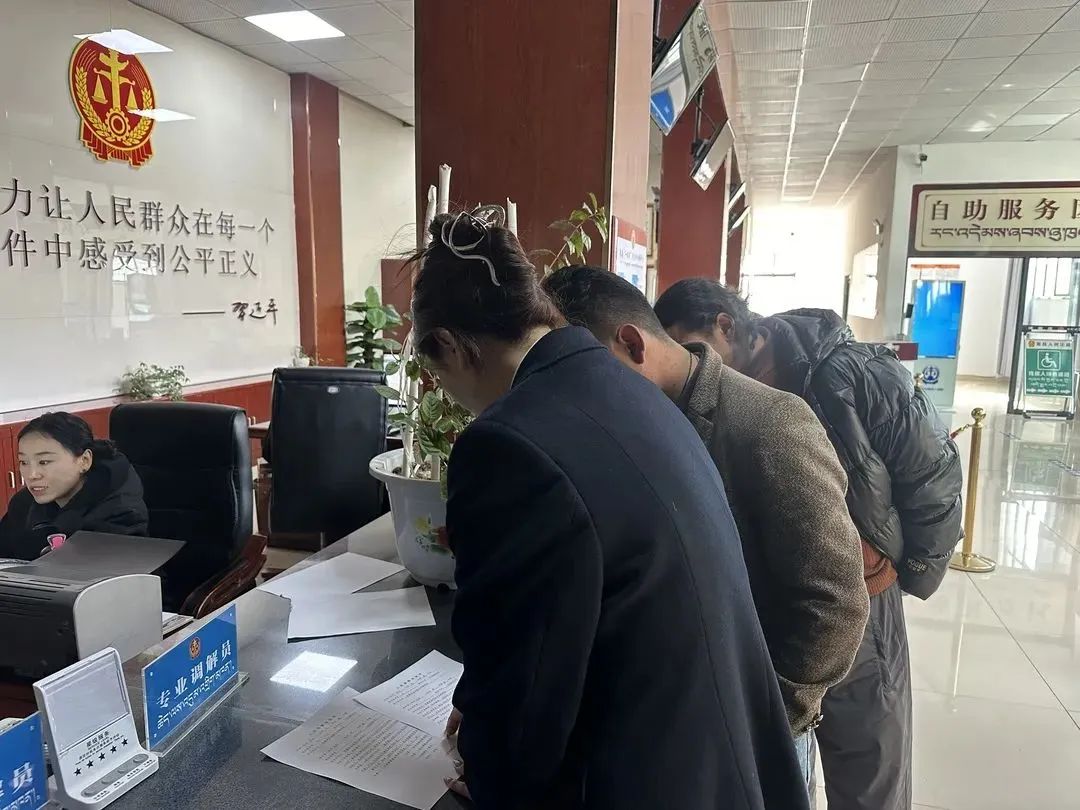 “法官,我已经收到女方给我的转款了,我申请撤诉!”一场几经波折的离婚财产纠纷通过色尼法院孔玛法庭承办法官庭前调解,原被告双方达成调解协议并当庭履行完毕,获得了当事人的高度赞誉。“有什么事好商量,有什么问题我们一起解决”法官说道!聂荣法院查当法庭通过释法说理、悉心调解,详细阐述法律规定和利害关系后,成功调处一起因房屋装修引发的承揽合同纠纷,充分彰显能动司法新作为。“今天法庭干警可给我们帮了大忙,不到半天就解决了,还不用交诉讼费,真是太方便了!”索县法院嘎美法庭通过“诉前调解+司法确认”的模式从“调解”到“司法确认”再到“送达法律文书”仅半天成功调处一起买卖合同纠纷,以高效率回应群众期盼。安多法院雁石坪法庭主动作为,找准基层社会治理的结合点和着力点,持续加强与一镇三乡的沟通联系,将村级调解组织、网格员、“乡贤”“村贤”等纳入基层调解组织中,以特邀人民调解员形式入驻人民法院调解平台,努力打造“大小纠纷有人解”的基层治理格局。