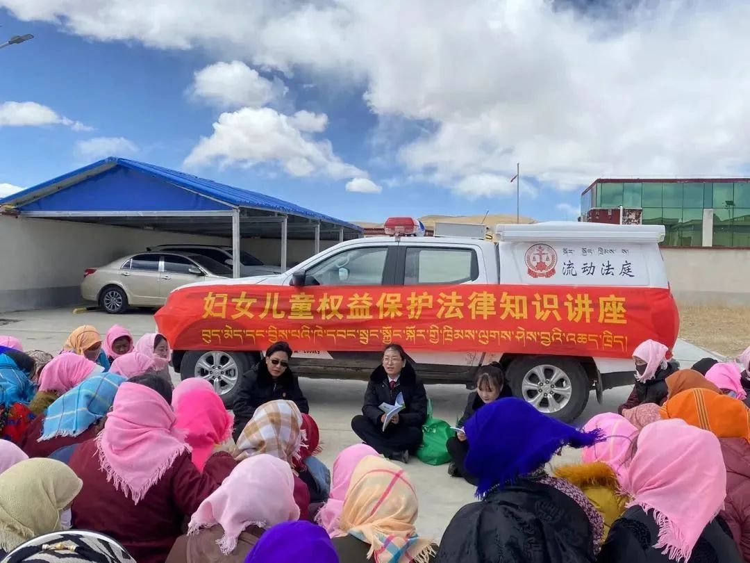法治文化重在传播普及、贵在落地生根。为滋养助推文明乡风、良好家风、淳朴民风的培育发展,“法耀天平”法宣队以大课堂为载体,切实找准乡村振兴司法服务多样化需求的切入点,结合《民法典》中的常见法律问题,为法律明白人、人民调解员、村(居)委员、乡村党员、弱势群体等特定人群开展系列普法宣传,形成带头学法、知法、守法、用法的良好氛围,让法治文化在草原牧区生根发芽、开花结果。色尼法院古露法庭联合片区司法所,干警民警齐发力,及时梳理反馈调解组织工作中存在的问题,组织辖区人民调解员、“法律明白人”30余人开展培训指导工作,从源头上促进调解工作规范化、法治化。安多法院雁石坪法庭按照“普法随人群流动,普法向群众聚合”的工作思路,坚持党建引领,联合镇司法所、派出所组成普法宣传队,以“播撒法治‘种子’ 滋养乡村‘净土’”为主题开展法治宣传进村居活动,共发放宣传资料、法治礼品300余份,解答法律咨询10余人次,受教群众达200余人。索县法院荣布法庭“索秀卓姆·法耀天平法宣队”通过开展案例释法、巡回送法等形式多样、更接地气的法治宣传活动,让《民法典》“唠”进群众家,将法治理念、法律知识精准送到身边、植根心中。班戈法院青龙东嘎法庭邀请妇女群众参与法庭开放日活动,通过直观感受、聆听讲解、专题讲座等方式,让现场妇女群众充分了解法庭工作,切实提升妇女群众法治意识和维权能力,活动中共发放宣传资料300余份,受益群众达80余人次,解答法律咨询5次。