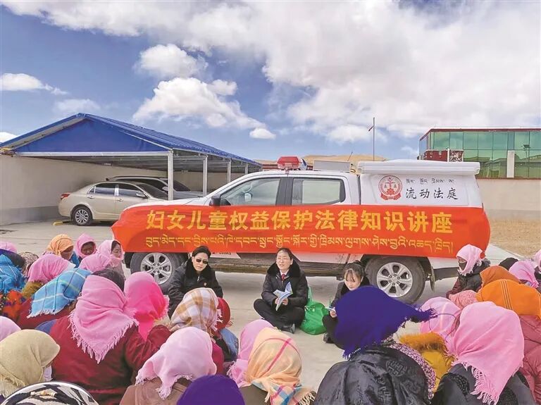 班戈县人民法院青龙东嘎人民法庭依托流动法庭开展妇女权益保障法专题法治讲座。