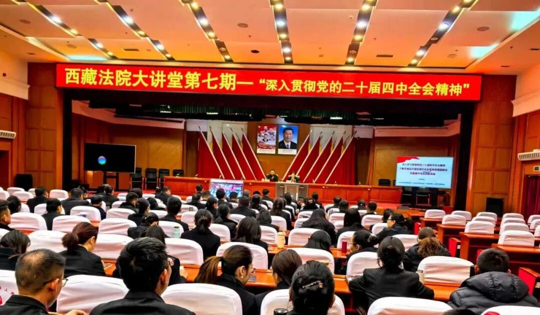 11月28日,自治区高法院举办2025年度第七期“西藏法院大讲堂”,专题学习宣讲党的二十届四中全会精神。自治区高法院党组副书记、副院长袁英鹰主持,自治区党委党校经济学教研部主任、副教授土多旺久同志受邀为全区三级法院全体干警作专题辅导讲座。