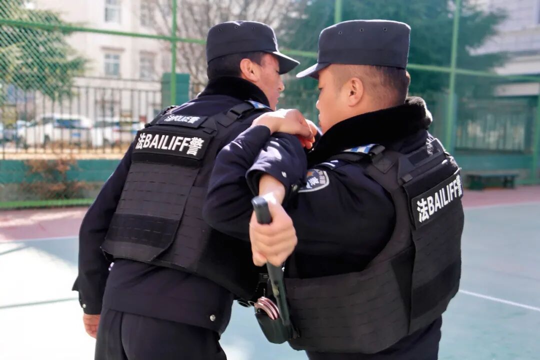 活动突出“规范操作、实战应用”导向,重点开展安检规范、警械具使用、押解看管、法庭警卫等科目训练。在警械具使用训练中,通过“分解教学+对抗演练”,让全体法警熟练掌握手铐、伸缩警棍、防暴盾牌等装备的“取械-戒备-使用-收械”全流程,司法警察大队普布云旦同志担任教官演示了多种上铐方式,大队每名干警认真学习;在队列与擒敌拳训练中,从严规范立正、行进等队列动作,深化擒敌拳的实战应用,通过双人对抗、细节纠偏,锤炼司法警察的纪律作风与近身制敌能力。