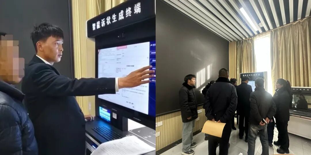 诉服干警现场指导当事人通过智能诉状生成终端撰写起诉书,积极推广应用“两状”示范文本,将抽象的司法服务转化为具象的便民举措,切实为群众诉讼减负提速,让司法温度可感可及、直抵人心。
