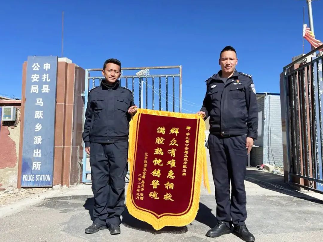 6月1日,申扎县公安局马跃乡派出所收到来自北京游客熊先生寄来的一面印有“满腔热忱铸警魂 群众有难急相救”字样的锦旗,以表达对马跃乡派出所民辅警衷心的感谢!