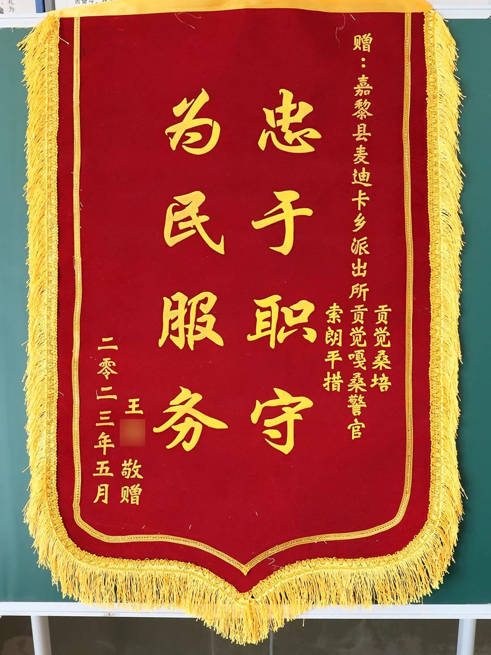 近日,那曲市公安局收到了两面分别印有“忠于职守 为民服务”“人民卫士 热心为民”的锦旗,字字表达着游客王先生对嘉黎县公安局麦地卡乡派出所民(辅)警的深深谢意。