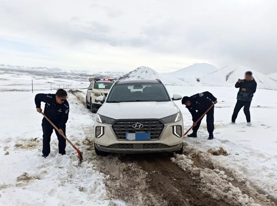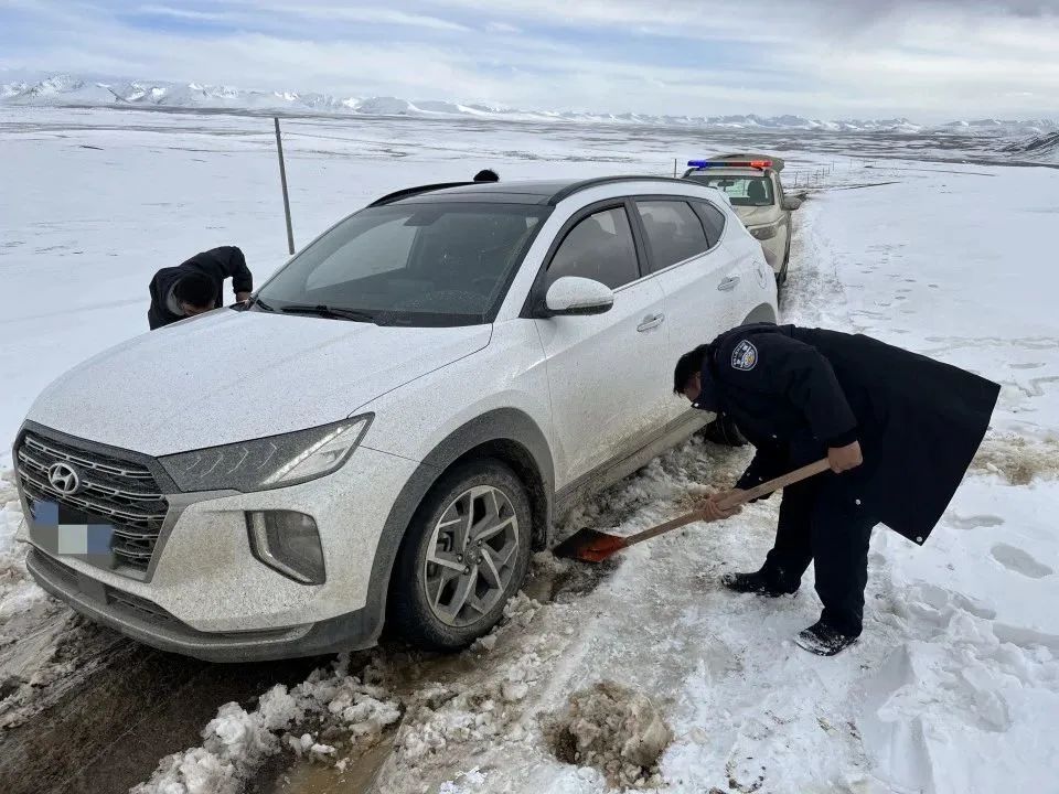 据了解,5月8日,麦地卡乡派出所接到游客王先生报警求助称:其驾车前往比如县途中,车辆陷入积雪被困,请求帮助。接警后,派出所第一时间组织警力携带救援工具赶往现场,通过清理积雪、警车拖拽等方式,历经三个多小时的不懈努力,成功救出被困车辆。
