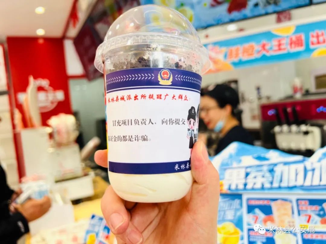 为切实提高辖区群众识骗防骗意识,有效遏制电信网络诈骗案件的发生,近日,林芝市米林县公安局县城派出所联合辖区奶茶店推出了秋天的第一杯“反诈”奶茶。