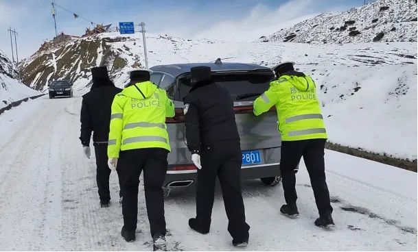 昂仁交警迅速出击救助多台因积雪受困车辆