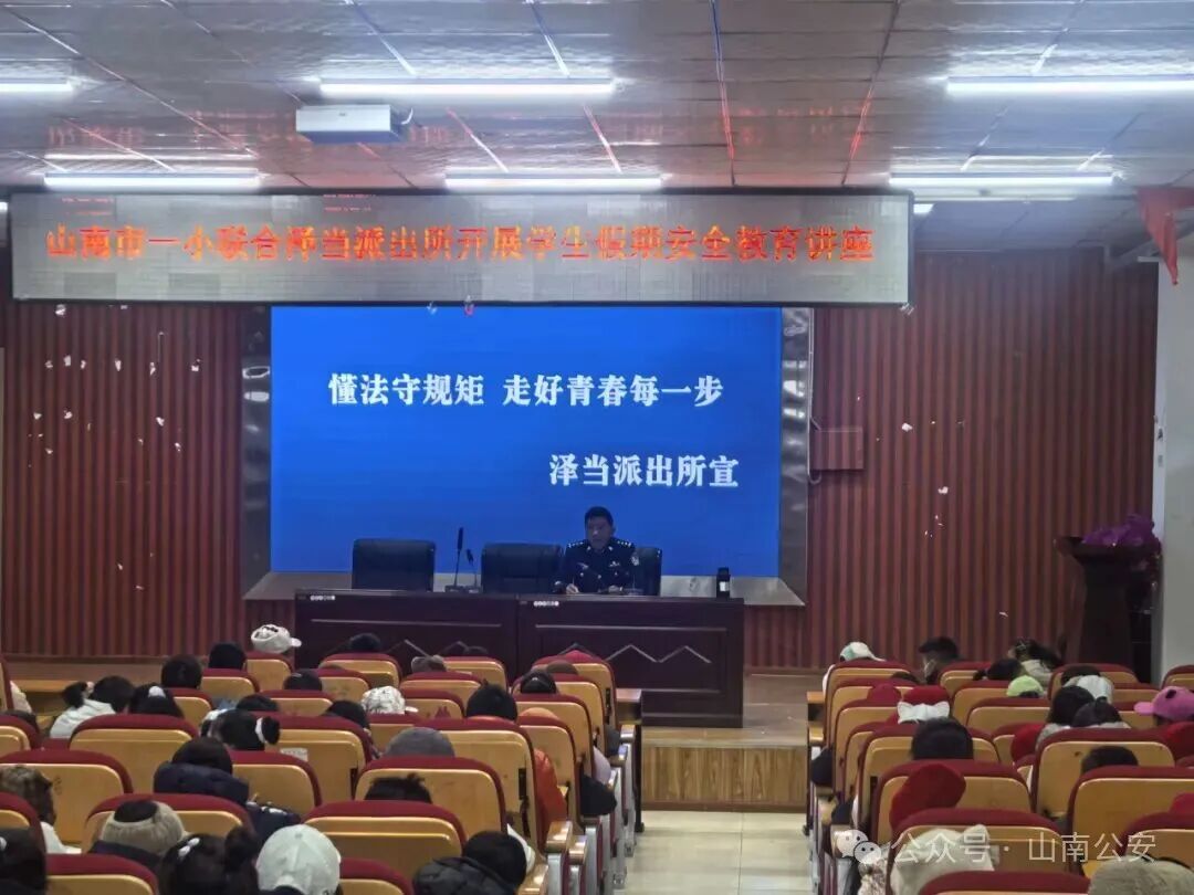 为切实加强校园安全防护,提升学生假期安全防范意识与自我保护能力。12月28日,泽当派出所联合萨热社区警务站组织民辅警走进山南市一小,开展寒假前安全专题讲座,为全校师生送上“安全大礼包”。