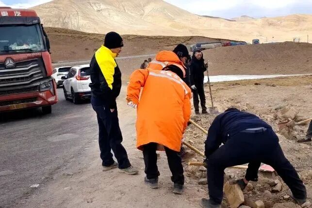 这边安抚群众情绪,那边民辅警一刻不停,反复联系拉萨的配件厂家与维修队伍,详细说明现场情况,全力协调配件加急配送。藏北严寒中,民辅警们一站就是 15 小时,即便手脚冻得发麻也坚守岗位,始终守在故障车旁、穿梭于车流里,持续疏导交通、实时更新路况、悉心照看滞留群众。