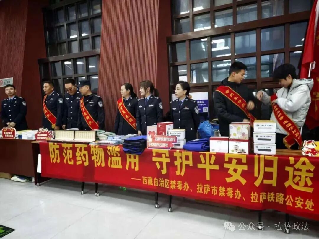 为筑牢春运期间的禁毒防线,提高广大旅客及市民的识毒、防毒、拒毒意识,2月2日,自治区禁毒办在春运返程高峰期和春节藏历新年来临之际,联合拉萨市禁毒办、铁路公安处、民航西藏区局公安局分别在拉萨火车站、拉萨贡嘎国际机场集中开展了以“防范药物滥用 守护平安归途”为主题的春运禁毒宣传活动,当天近1000余名往返旅客接受禁毒教育,全区春运期间禁毒集中宣传正式拉开帷幕。