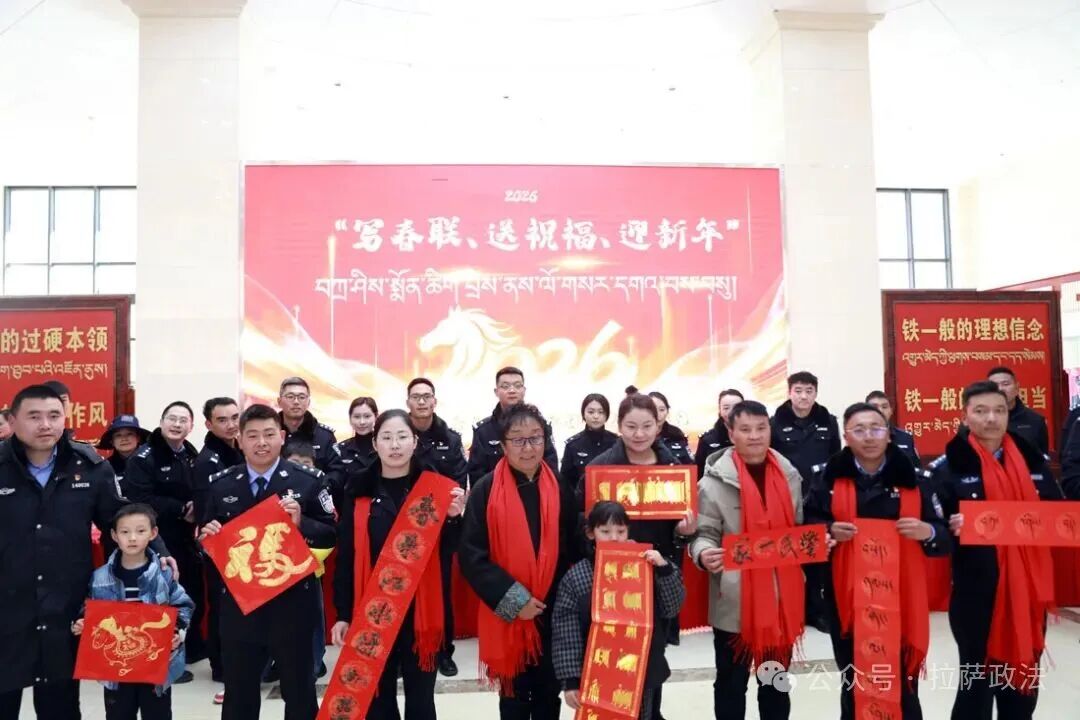 为弘扬中华优秀传统文化,营造喜庆祥和的节日氛围,2月6日下午,拉萨市公安局组织开展“写春联、送祝福、迎新春”活动,200余名民辅警代表及警属参加活动。此次活动以书法创作为载体传递新春祝福,旨在进一步凝聚警心、激励斗志,同时向辛勤奉献的全体民辅警以及默默支持的警属们,致以新春的问候与诚挚的感谢。