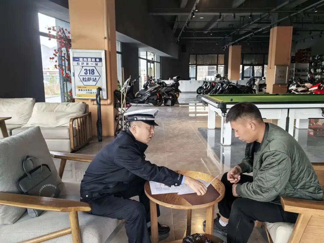 重拳整治“飙车炸街”,源头治理是关键。为有效遏制“飙车炸街”交通违法行为,从根源上消除道路交通安全隐患,切实保障群众出行安全,4月15日,拉萨市公安局交通管理支队柳梧大队深入辖区摩托车销售店铺,开展“飙车炸街”源头专项摸排调查工作,严堵非法改装、违规租赁等行业漏洞,精准发力斩断“飙车炸街”风险链条。