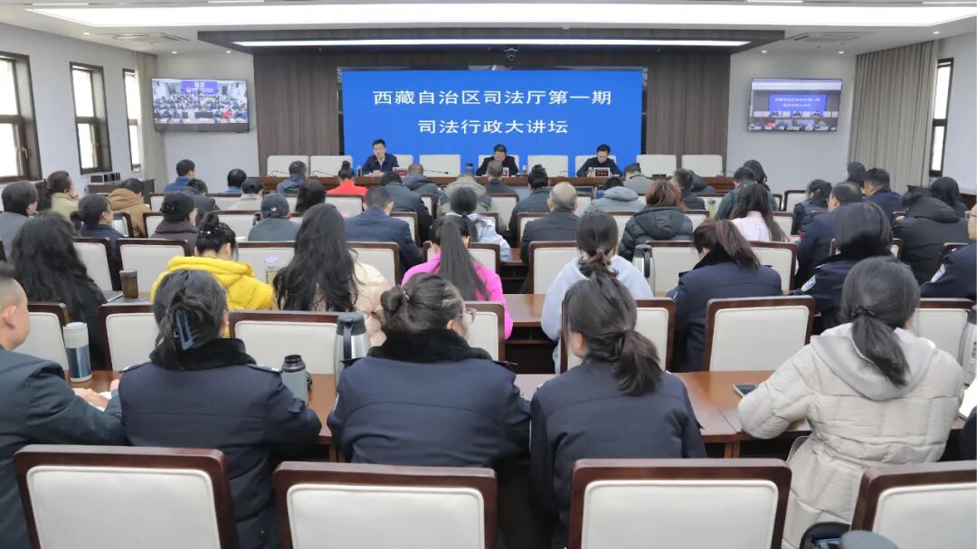 为完整准确领悟习近平总书记在考察中央办公厅工作时提出的“五个坚持”重要指示精神,将精神实质转化为服务提升司法行政业务水平的强大动力,2025年11月28日,自治区司法厅以“完整准确领会‘五个坚持’精神实质,全面规范提升司法行政业务水平”为主题,举办第一期司法行政大讲坛,厅办公室主要负责人主讲,厅党委委员、副厅长张雪原出席并点评,厅机关和驻拉萨各直属单位干警职工共计70余人参加。