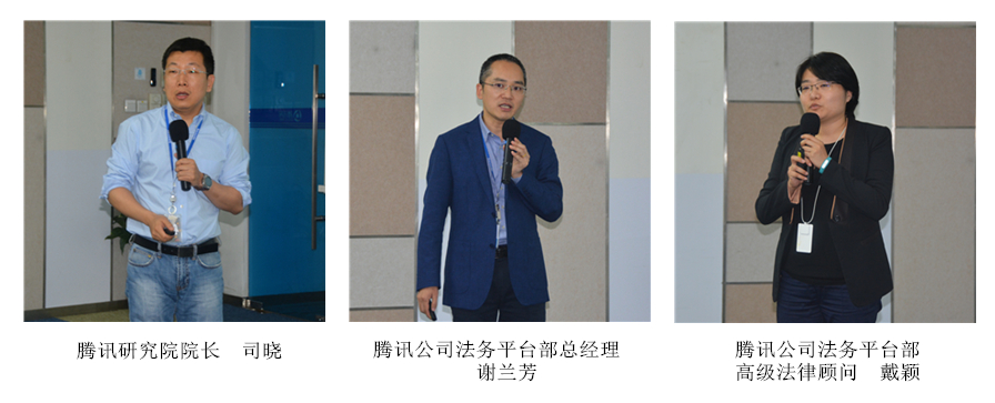接着,调研组移步腾讯大厦会议室,召开专题法治调研座谈会。调研的目的是了解腾讯公司业务和互联网发展中科技+法律的相关情况,同时加强中国法学会与腾讯公司的沟通合作。座谈会由腾讯公司产业政策部总经理肖黎明主持。会议的第一个议程是郭凯天副总裁介绍腾讯公司的整体情况。根据郭副总裁介绍,互联网的主要业务是连接和内容,相对应的就是科技和文化。腾讯公司最初开发QQ、微信社交平台,通过社交平台连接用户,希望未来能够从人与人的连接实现人与物的连接、物与物的连接,直至连接一切。随着互联网的发展,内容变得日益重要。现在腾讯公司的收入主要来自于内容产业,也就是文化产业,包括游戏、阅读、音乐、影视、动漫等。未来腾讯公司的业务还会注重在金融方面的发展。现在位居全球前十的互联网企业中,主要是美国和中国企业之间的竞争,说明中国互联网企业在这一轮互联网经济竞争中跑赢了欧洲和日本,这是一个令中国人骄傲的成就。郭副总裁指出,互联网与法律的关系非常密切,无论是国内业务还是海外发展,都需要强有力的法律支持。腾讯公司非常重视法律工作,法务部门的专业人员达300多人,腾讯研究院也是在法律政策研究的基础上发展起来的。郭副总裁希望中国法学会能与腾讯公司加强合作,共同研究互联网发展中的法律问题,确保互联网和互联网企业健康发展。会议的第二个议程是腾讯公司法务平台部总经理谢兰芳介绍公司发展和法务管理。目前,腾讯公司分为社交网络事业群、微信事业群、互动娱乐事业群、移动互联网事业群、网络媒体事业群、技术工程事业群、企业发展事业群等七大事业群,为用户提供全方位互联网产品。法务模块分为法务综合部、法务平台部、知识产权部、合规交易部、法律政策研究部等五大部门,为腾讯公司业务提供法务支撑。五大法务部门各司其职,法务综合部负责诉讼、维权、隐私与媒体;法务平台部负责一线对接七大事业群;知识产权部负责专利、商标、版权布局;合规交易部负责投资并购、技术交易、投后法务;法律政策研究部负责法律研究、竞争政策。通过谢兰芳总经理的介绍,调研组对腾讯公司的法律业务以及组织架构有了比较清晰的了解。会议的第三个议程是腾讯研究院院长司晓发表题为“人工智能、区块链等新科技对法律的影响”的演讲。司晓院长首先就法律规制科技VS科技增强法律提出了自己的观点,指出人工智能、区块链等互联网新科技给法律、司法以及执法的发展带来了新机遇,这些互联网新技术在法律领域的运用是一场深刻的革命;着重介绍了互联网新科技影响法律的四个阶段:法律信息和流程数字化、在线化,法律服务智能化、自动化,通过代码规制、代码即法律,法律代码化即代码之治;最后指出人工智能、区块链等互联网新科技为法律开辟了新天地,也带来了新风险,需要科技界和法律界共同应对。司晓院长很具专业性的演讲引发了大家深入的思考。会议的第四个议程是戴颖、黄汉章等就“互联网+法律业务”这一主题发表演讲,指出互联网和法律的结合,从以往的内部信息化建设,发展到与PC互联网结合,并进一步向移动端转移;介绍了微信的法律属性及知识产权保护义务和原则、微信品牌维权平台的运用和推广,等等。会议的最后一个议程是张苏军副会长发表讲话。
