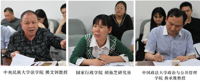 中国政法大学法治政府研究院院长王敬波教授作为本项目首席专家,代表项目组从评估范围、评估方法、评估原则、评估指标体系和评估结果处理方式等方面对评估方案做了详细介绍和阐释。北京市第四中级人民法院副院长程琥研究员、中国人民大学公共政策研究院执行院长毛寿龙教授、北京大学政府管理学院燕继荣教授、中央民族大学法学院熊文钊教授、国家行政学院胡仙芝研究员、中国政法大学政治与公共管理学院詹承豫教授、南开大学法学院宋华琳教授、中央民族大学法学院张步峰教授等法学、公共管理、行政管理领域的知名学者,和上海市编办副主任金跃明等来自北京市、上海市、哈尔滨市编办、法制办、公安局、民政局、住建委等实务部门的专家共20余人结合各地清理工作的进展、取得的成效和面临的问题,从现有评估和清理指标的进一步完善、评估和清理对象的精准界定、评估和清理目标的清晰明确、评估和清理方法的科学可操作等不同方面进行了充分讨论、深入交流,达成了诸多共识,使下一步工作的方向和焦点更为明确。