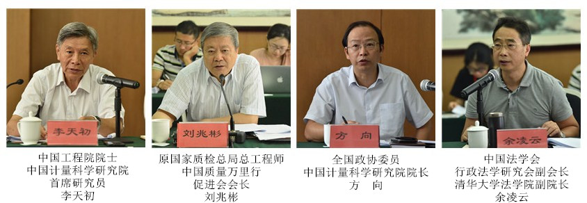 中国工程院院士、中国计量科学研究院首席研究员李天初,原国家质检总局总工程师、中国质量万里行促进会会长刘兆彬,全国政协委员、中国计量科学研究院院长、研究员方向,中国法学会行政法学研究会副会长、清华大学法学院副院长、教授余凌云,中国法学会经济法学研究会秘书长、北京大学法学院教授肖江平,中央财经大学法学院教授、《财经法学》主编高秦伟,武汉大学知识产权与竞争法研究所所长、教授宁立志,中国计量大学法学院教授陶丽琴,上海计量测试技术研究院副院长吴建英,北京市质量技术监督局计量处副处长刘勇,北京理工大学法学院副院长、副教授郭德忠,中国计量科学研究院副研究员于连超等相关领域的知名专家学者参加会议并发表修改建议。中国法学会民法学研究会常务理事、北京大学法学院教授易继明,中航工业集团计量测试技术研究所研究员张志民提交了书面意见。
