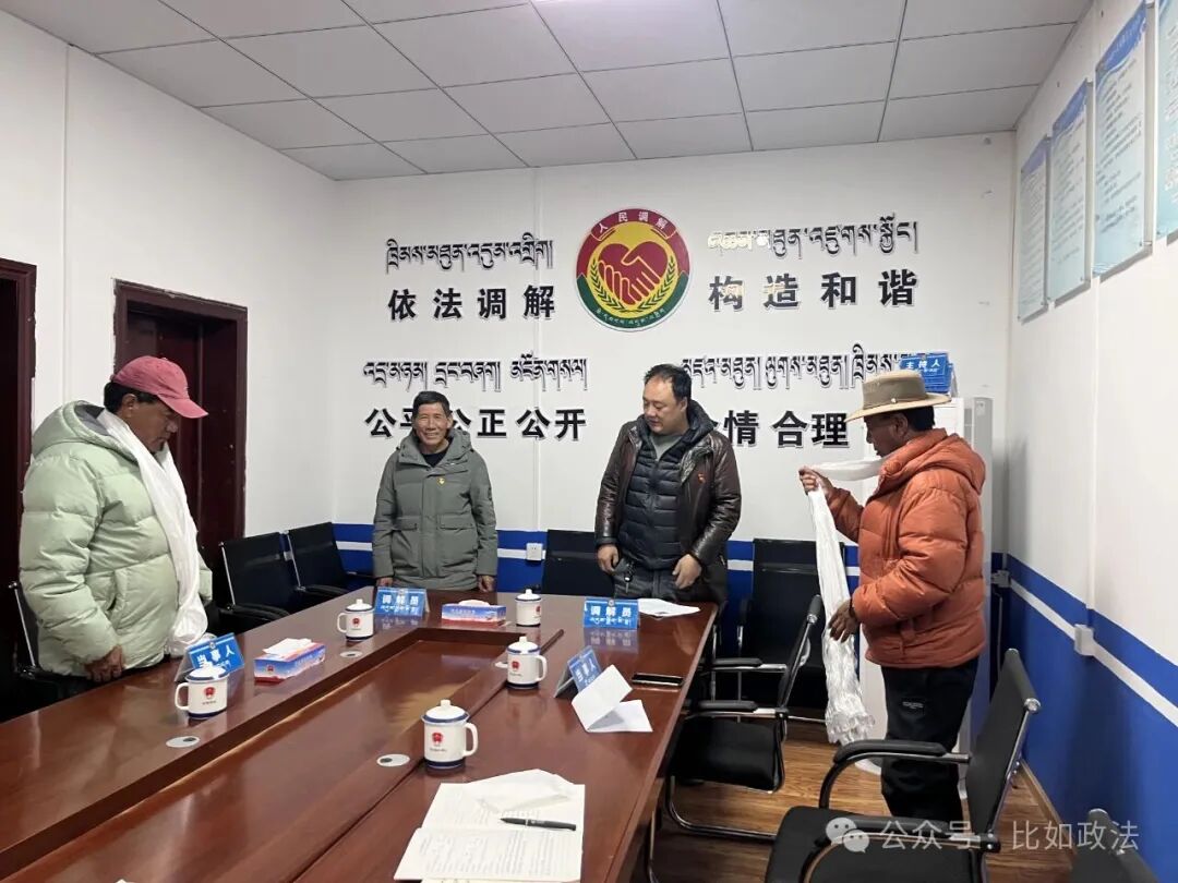 作为全县两个自治区级金牌调解室之一,白嘎乡“朗扎调解室”以擅长调解家庭邻里纠纷和边界草场纠纷而闻名,但作为人民调解力量,其法治化、规范化程度不高的问题,始终制约着“朗扎调解室”更进一步的发展优化。自乡综治中心建立以来,白嘎乡始终坚持致力于推动人民调解法治化进程,既推动法学会服务站参与人民调解工作,又组织人民调解员入驻法学会服务站参与工作,一边调解矛盾一边规范自身,同时通过学习《中华人民共和国刑法》《中华人民共和国民法典》等与群众日常生活息息相关的法律法规,全面提高人民调解员依法调解水平。如今,白嘎乡各个基层人民调解员口中保持“道理”的同时,也渐渐开始多了一些“法律”,真正让“德治”与“法治”在矛盾纠纷调解中深入融合,切实提高调解成功率。今年以来,白嘎乡综治中心调解矛盾纠纷71起,涉及资金253.8万余元,各村人民调解委员会调解矛盾纠纷23起,切实做到“小事不出村,大事不出乡,矛盾不上交”。