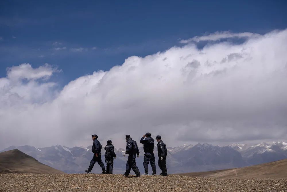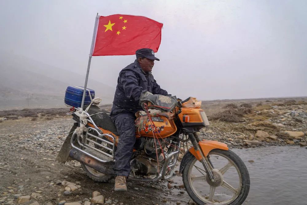 这里是平均海拔超过5000米的西藏日喀则市萨嘎县昌果乡,虽然已是初夏时节,但依然是寒风刺骨。50岁的昌果护边联防队队长石角带领18名队员,骑着摩托车在边境线巡逻。