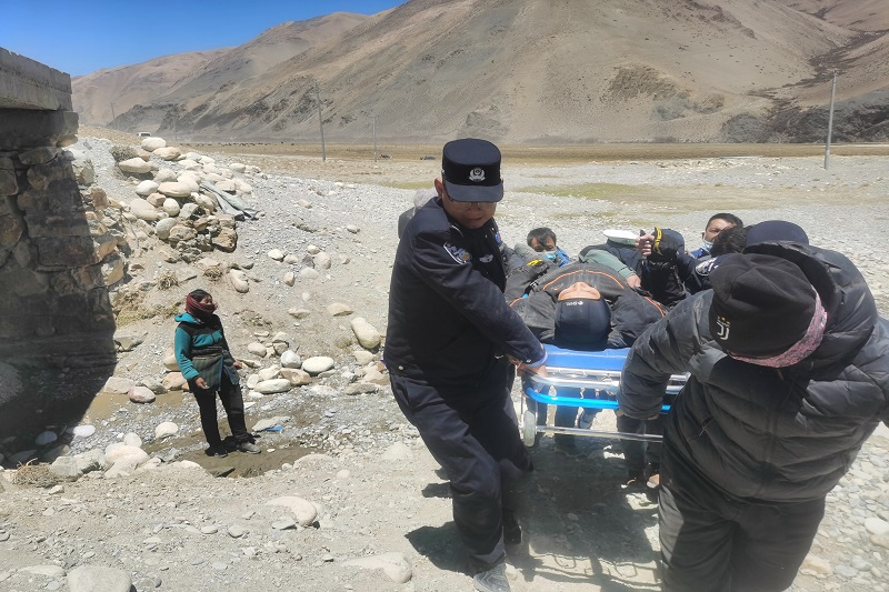 今年4月6日,一位骑行游客不慎摔伤,情况危急,急需送医。被巡防的护边员发现后,立刻将消息通报至联防队员管理群,接警后,派出所民警和景区工作人员迅速响应,组成救援小队赶赴现场,大家小心翼翼地将游客抬上担架,在警车护送下,顺利将该名游客送往至扎西宗镇卫生院救治。途中,民警不断通过对讲机与卫生院沟通,实时反馈游客状况。因送医及时,该名游客很快脱离危险,事后,他激动地说:“要不是大家的救助,后果真不敢想,谢谢大家!”