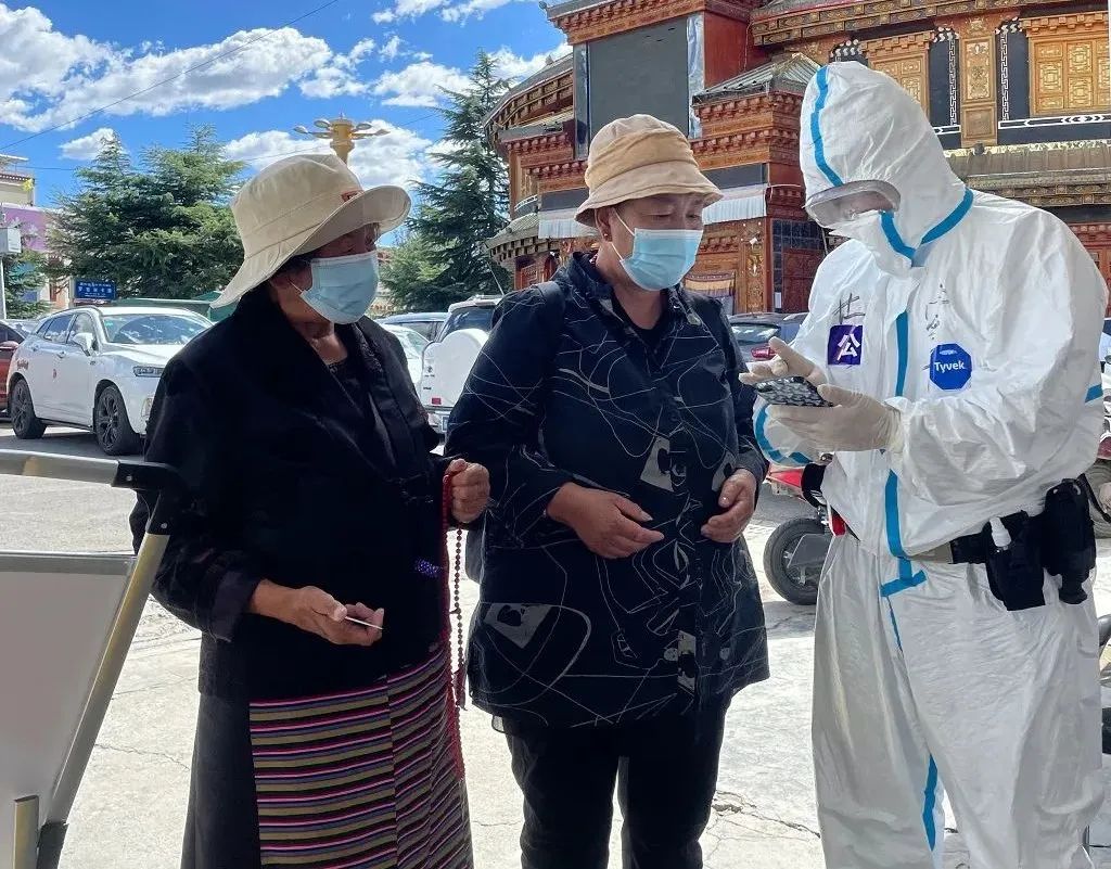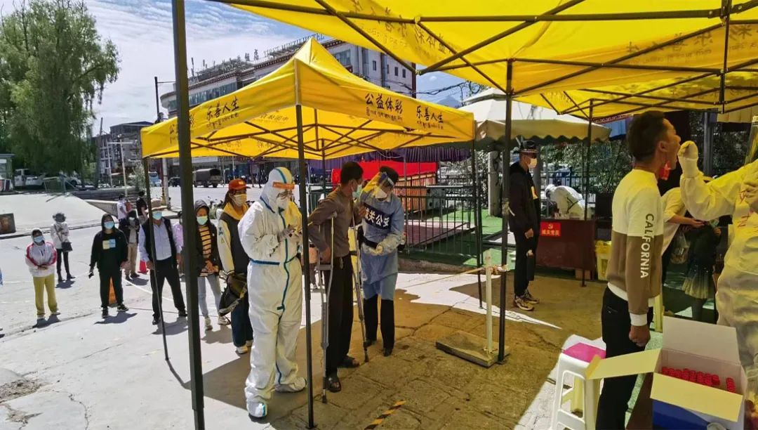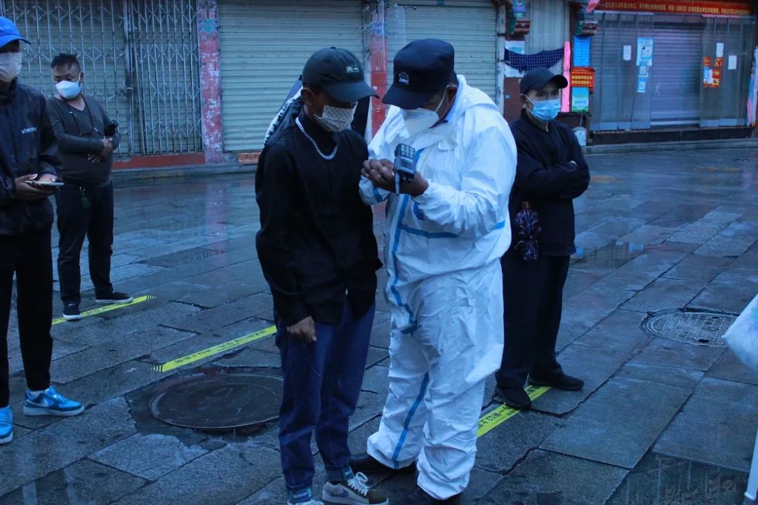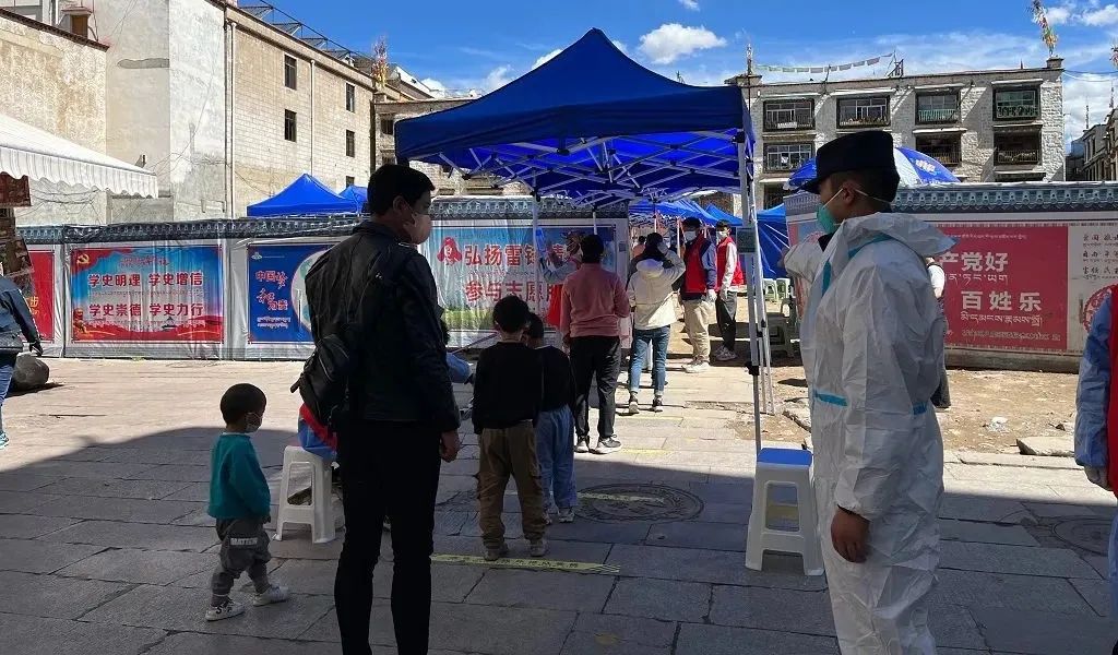 为保障群众安全有序进行核酸检测,拉萨公安认真维护核酸检测点位秩序,面对群众询问,民辅警耐心解释回答。