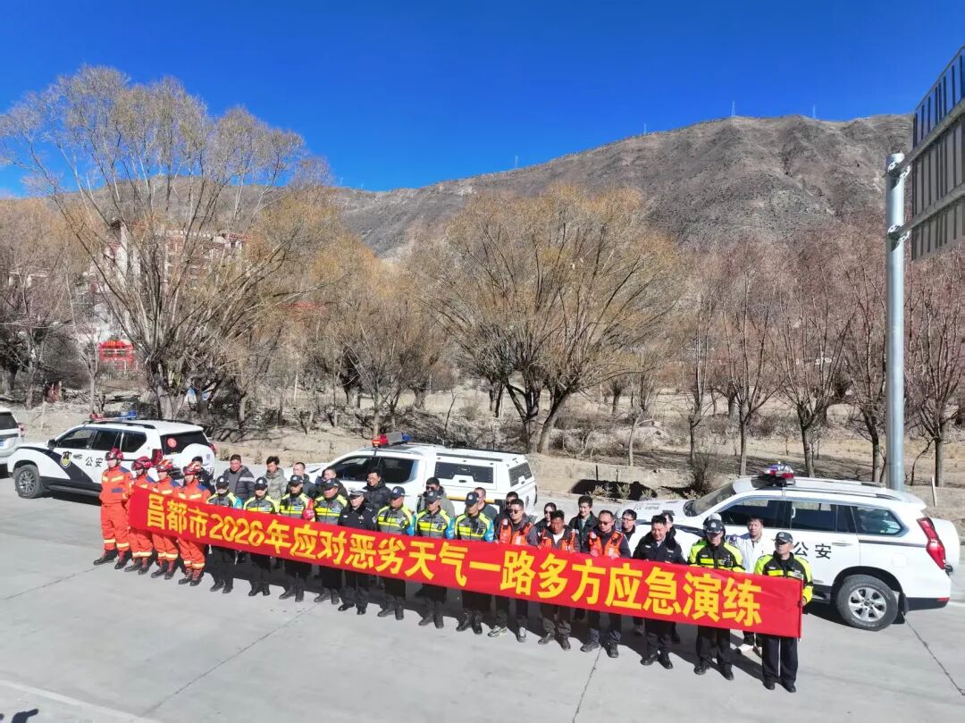 为提升恶劣天气下道路交通应急处置协同能力,防范化解冬季雨雪、冰冻引发的交通事故风险,1月20日,昌都市道交委办牵头联合市公安局交管支队、气象局、交通运输局、公路事业发展中心、消防救援支队和察雅县公安局交管大队、察雅县人民医院等多部门,在214国道重点路段开展应对恶劣天气一路多方应急演练。
