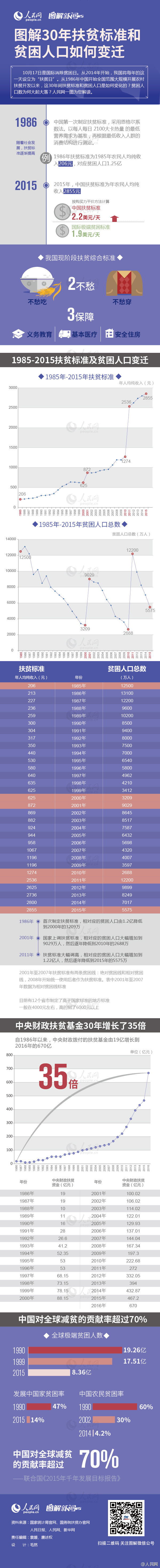 今天是国际消除贫困日。从2014年开始,我国将每年的10月17日设立为“扶贫日”。从1986年中国开始全国范围大规模开展农村扶贫开发以来,这30年间扶贫标准和贫困人口是如何变化的?