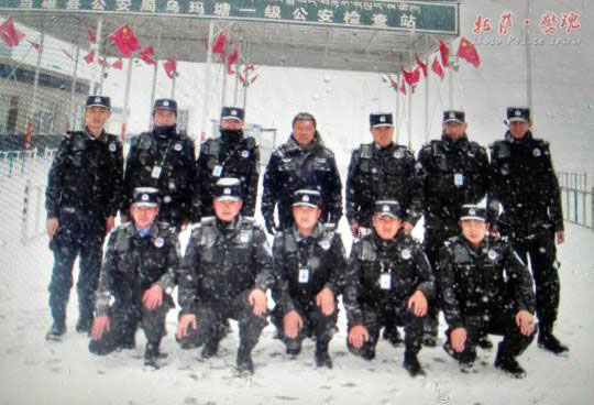 大年初一,海拔4600米的乌玛塘一级公安检查站迎来了2017年的第一场雪,民警们在工作间隙留下了这样一张雪中的合影,虽然大雪中的照片有些模糊,但这无疑是新年里最为动人的一张全家福。