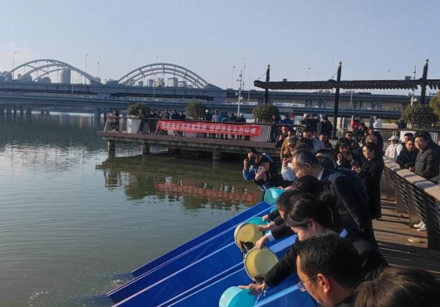 2023年12月1日,陕西省秦岭北麓地区人民检察院与西安市农业农村局在西安世博园三号码头联合开展增殖放流活动(资料照片)。记者张英摄
