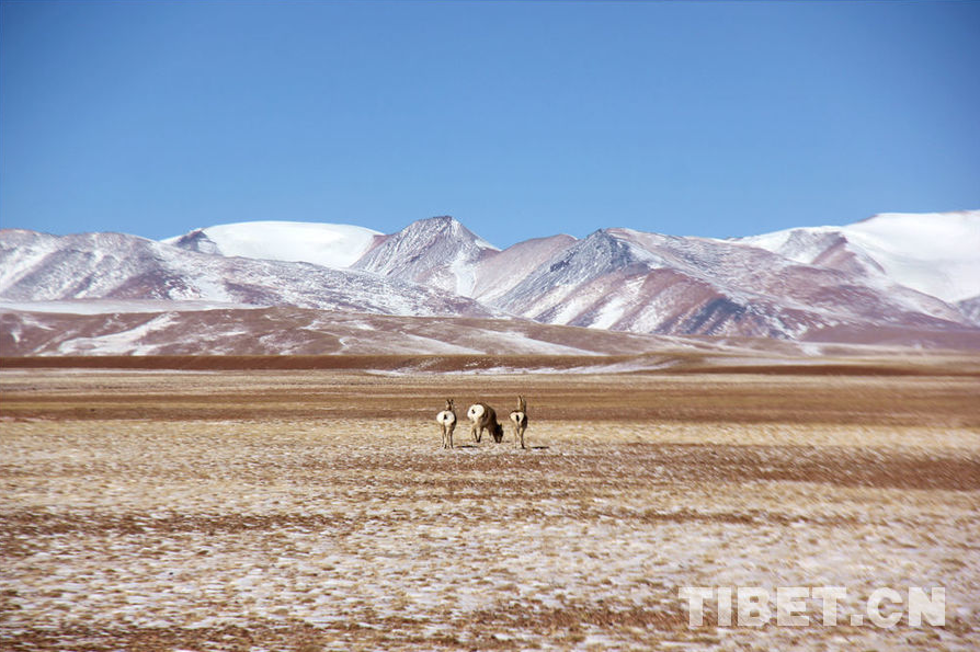 中国西藏网讯 在广阔的藏北地区,孕育着壮美的羌塘大草原。这里有数不尽的神山圣湖和浩瀚的草原。雪后的羌塘草原尽显静谧底色,奔跑的野生动物赋予其灵动华彩。(中国西藏网 记者/赵二召)图为雪后的羌塘草原 摄影:赵二召