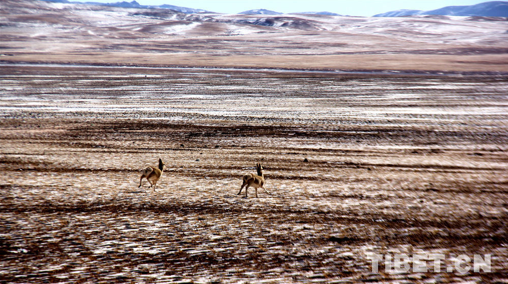 图为奔跑的藏原羚 摄影:赵二召