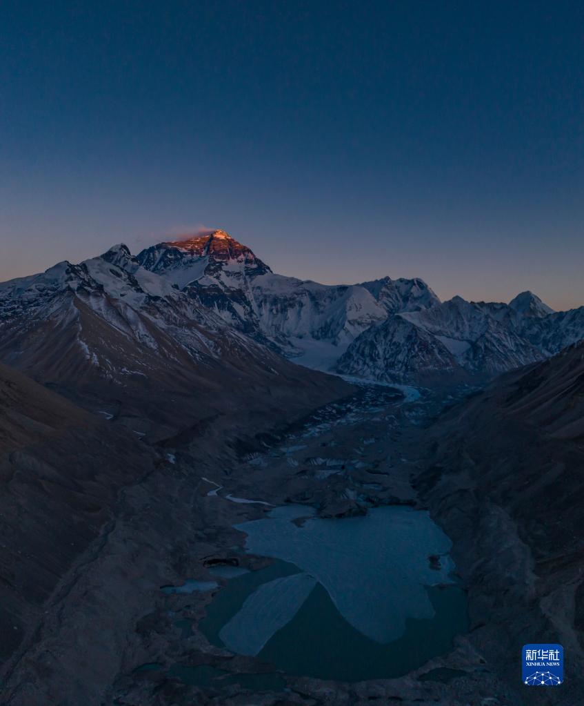 这是在海拔8400米左右高空拍摄的珠穆朗玛峰(5月23日摄,无人机照片)。新华社记者 孙非 摄