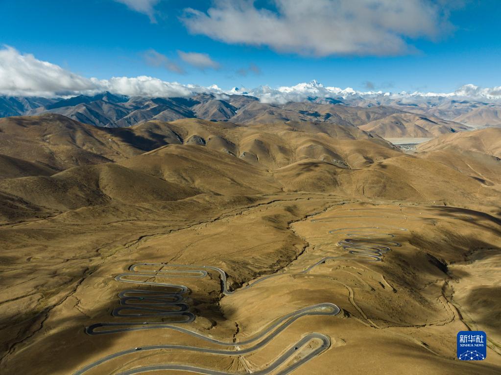 这是在海拔6000米左右高空拍摄的通往珠峰的公路(5月26日摄,无人机照片)。新华社发(旦增努布 摄)