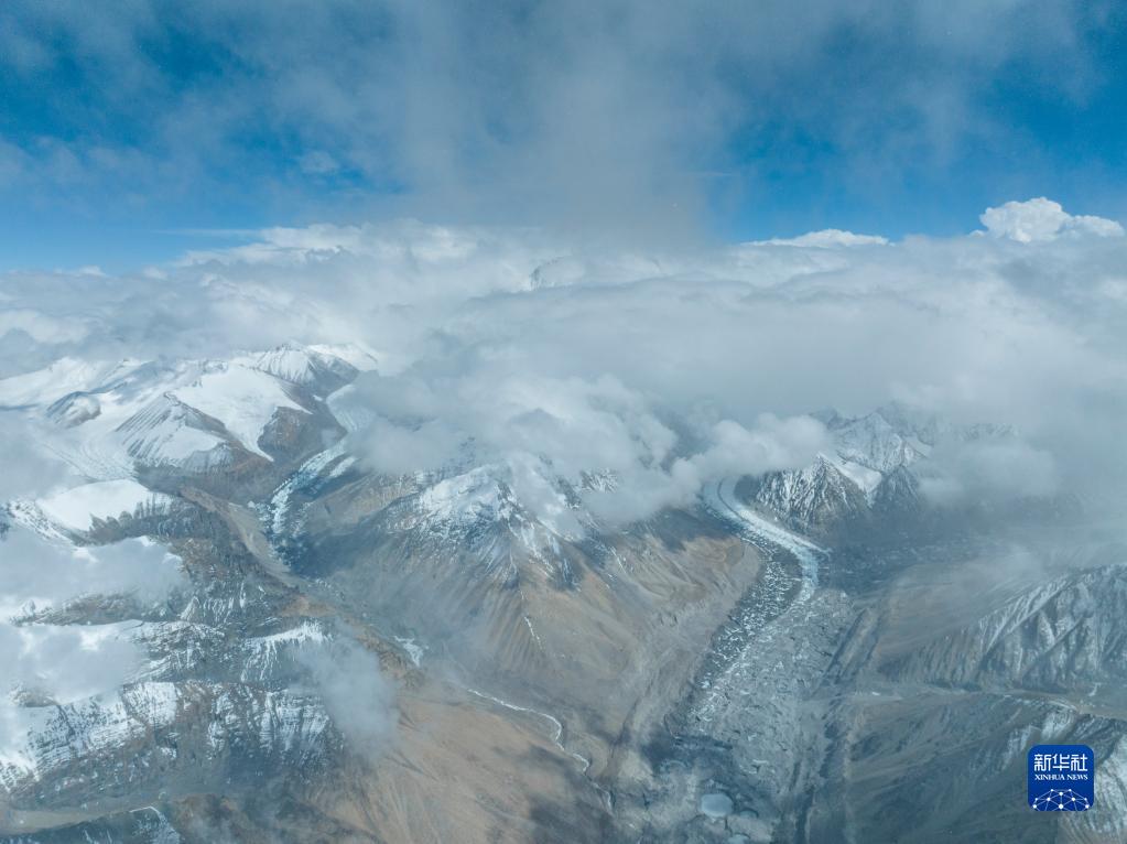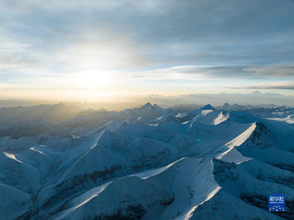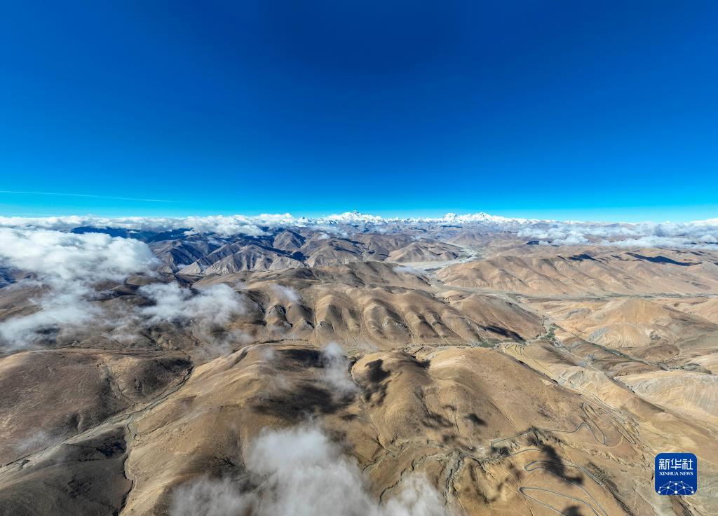 这是在海拔8000米左右高空拍摄的喜马拉雅山脉群山(5月23日摄,无人机照片)。新华社记者 洛卓嘉措 摄