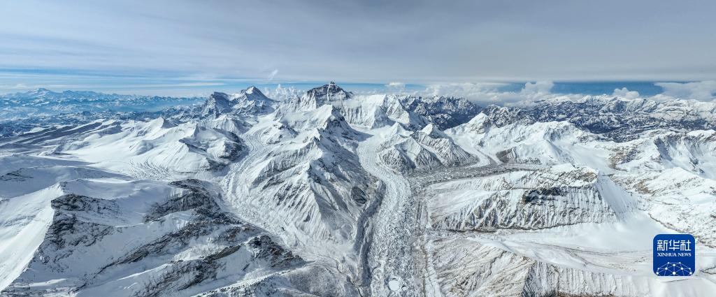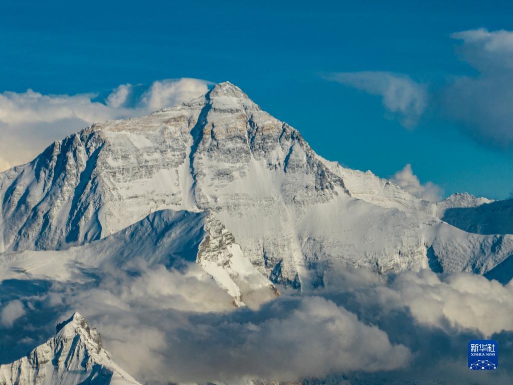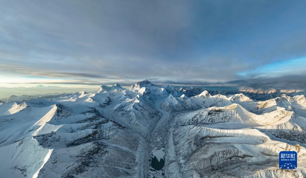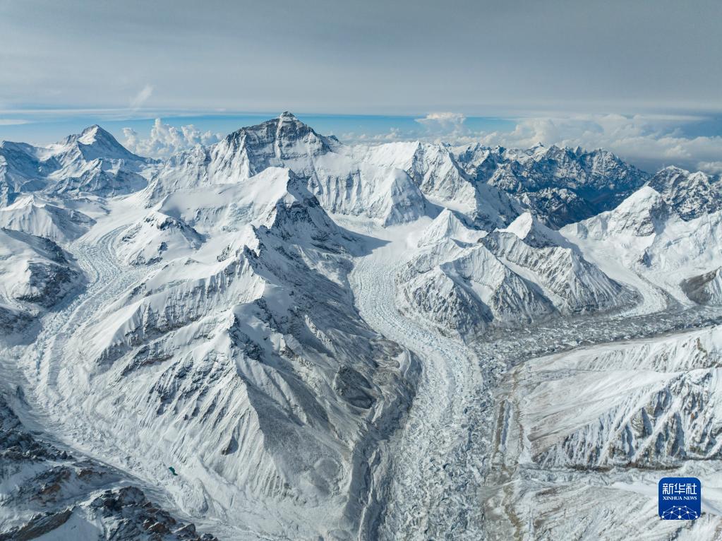 这是在海拔5700米左右空中拍摄的珠穆朗玛峰(5月11日摄,无人机照片)。新华社记者 孙非 摄