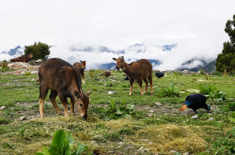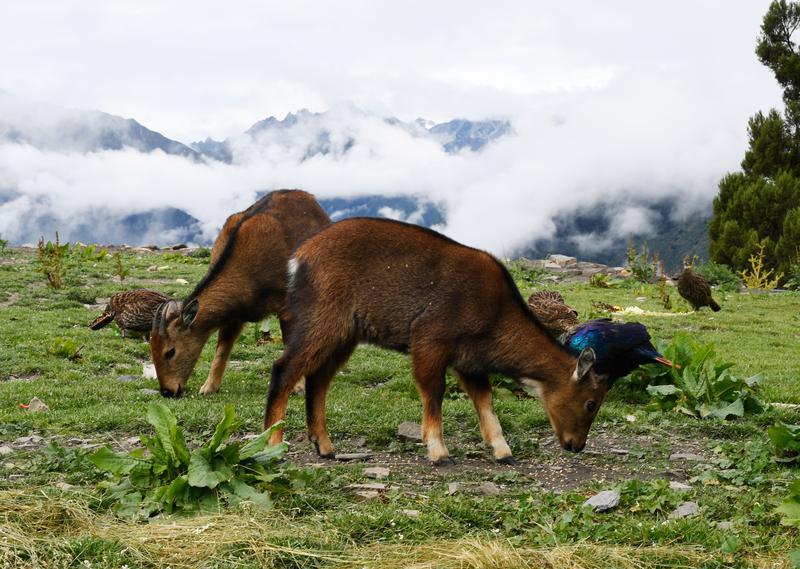 图为喜马拉雅斑羚和棕尾虹雉和谐共处景象。记者 旦增兰泽 摄