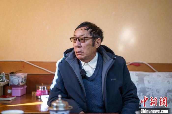 图为12月3日,支布老人在家中向中新网记者讲述“两路”为西藏带来的变化。贡嘎来松 摄