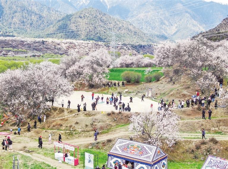东风吹皱尼洋河的绿波,桃花粉黛染遍藏东南的山坡。4月3日,为期一个月的林芝第二十二届桃花旅游文化节如约而至,吸引五湖四海的游客踏春而来。林芝市以花为媒,精心筹备,将“宠爱游客”这条主线贯穿始终,动员全市各县(市、区)各界力量,精心推出花车巡游、“桃花仙子”评选、大峡谷赏花、非遗打铁花、书画联展、无人机表演、“你好桃花”音乐嘉年华、特色产品展销、“春分桃夭”免费美食体验等累计40余项精彩活动,涵盖“吃喝玩乐游购娱”等游客兴趣所及的方方面面,主打一个赏花游园的氛围感、热闹劲儿,让广大游客来到林芝、爱上林芝,传递林芝的美丽、感受林芝人民的热情。图片均由 刘枫 谢筱纯 摄