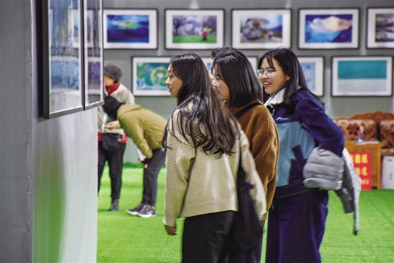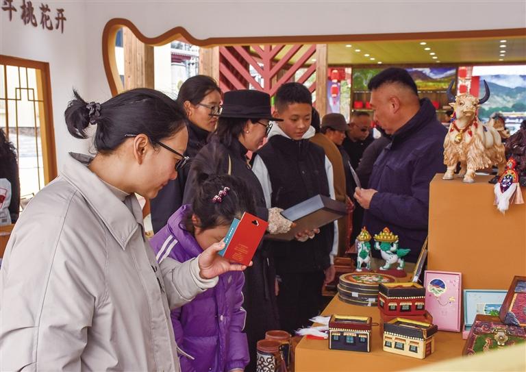 游客和市民群众在文创产品展销区参观、选购特色产品。