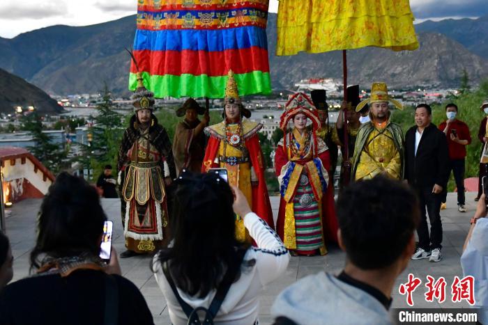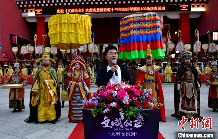 图为《文成公主》大型实景剧第十三季演出100场庆典活动现场。李林 摄