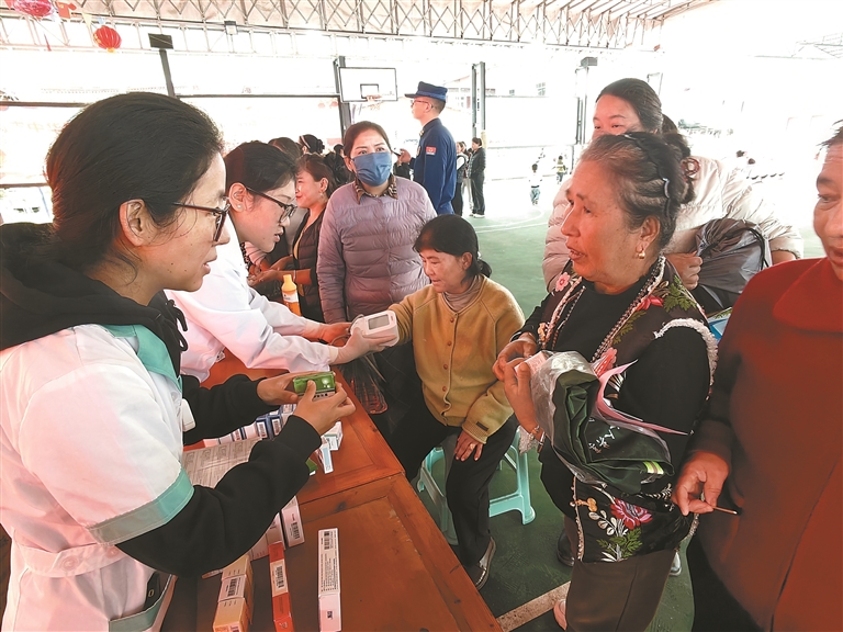 图为墨脱县背崩乡卫生院医务人员为群众发放药品。记者 王敏 通讯员 字建伟 摄