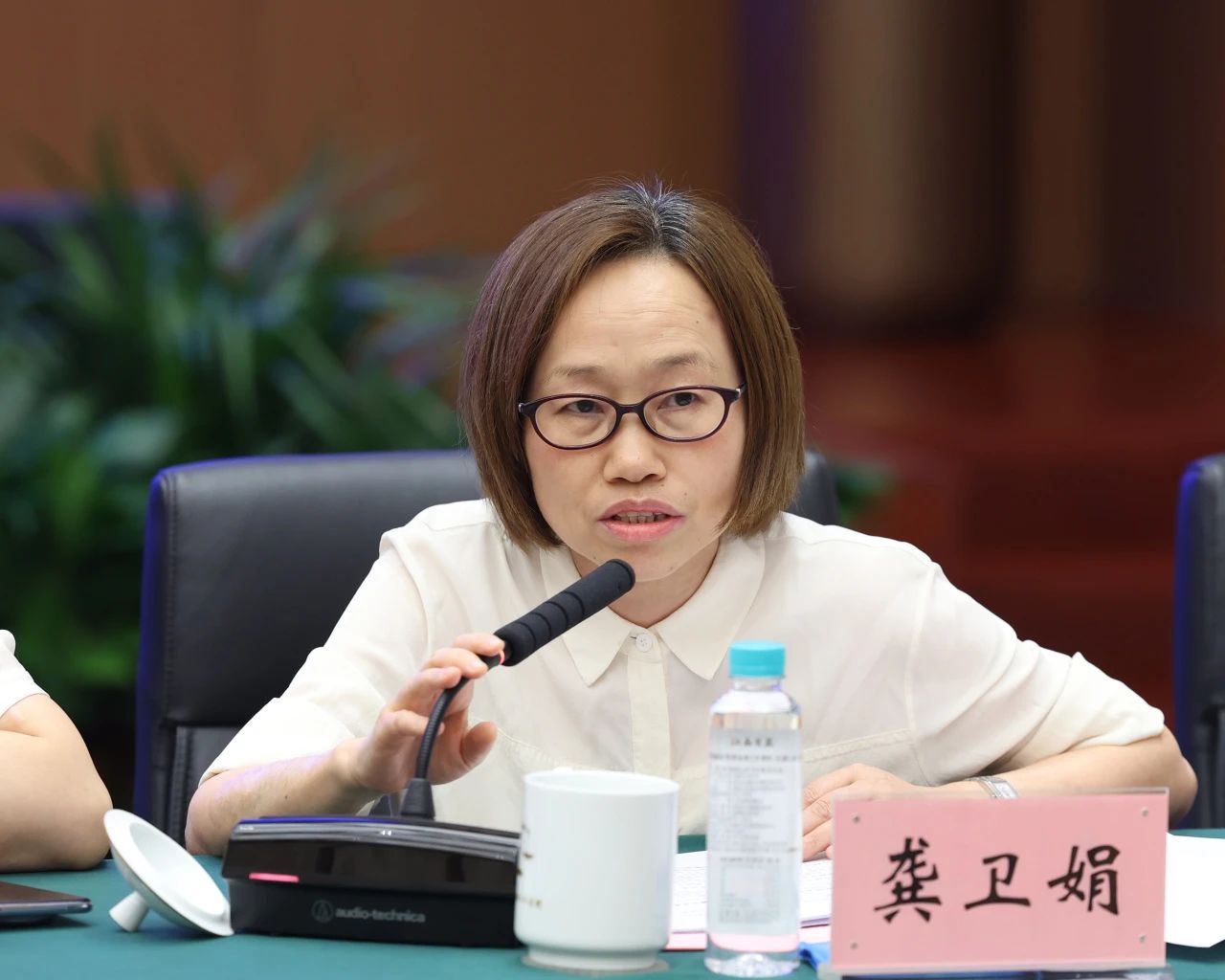 调研组与全国人大代表、全国政协委员一同听取江苏法院工作情况介绍并座谈。