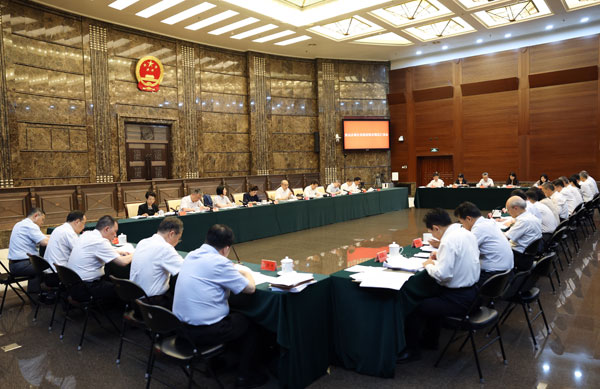 7月15日,最高人民法院召开重点改革任务推进落实情况汇报会,最高人民法院党组书记、院长张军主持。摄影:孙若丰