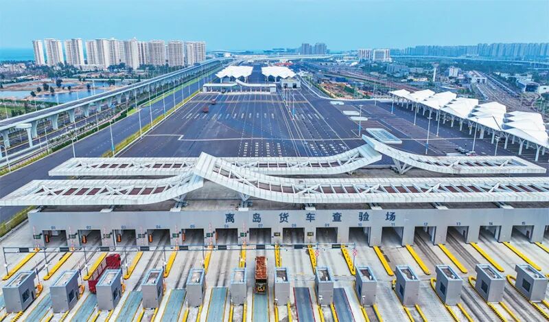 2025年12月18日,海南自由贸易港将正式启动全岛封关。封关运作标志着海南自由贸易港由起步阶段到实质性运作、由政策试点到制度安排的全面转型,标志着海南自由贸易港制度型开放进入新的重要起点。图为2025年11月18日,海口新海港和南港“二线口岸”(货运)集中查验场,由口岸、海关、交通、港口等参与的多场景合成演练正在进行。 人民图片 张茂/摄