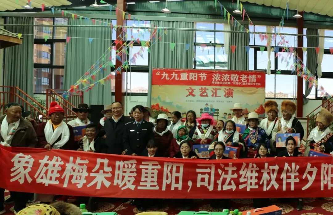 象雄梅朵暖重阳 鹤发童颜添喜色 笑口常开沐春风 司法维权伴夕阳